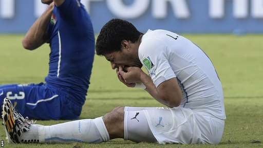I had to laugh when I read this on the BBC Live reporting of the latest Luis Suarez biting incident: