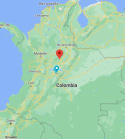 Jorge Ariza was born in 1927 in Bolivar in the Santander Department. (see the red pin on the map). He comes from a musical family which was headed by his grandfather Teofilo Ariza who was the creator of a distinct technique of the Requinto. His technique opened the way to show the small tiple Requinto (12 metallic stringed guitar) as a harmonious instrument which pleased those attending in the halls where he offered concerts which showcased chopped bundles of folk melodies impregnated in the spirit of Andean culture.