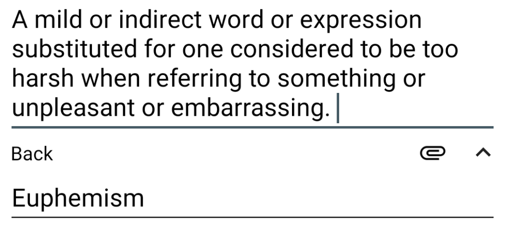 I was watching the movie ‘Pay It Forward‘ with Kevin Spacey and he in character as the school teacher said ‘Euphemism’ and I had to look it up.