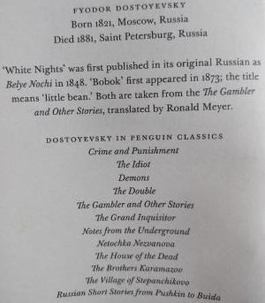 The most recent Wednesday literature piece featured here was an extract from Dostoevsky’s novella – White Nights written early in his career 1848. Today’s extract is from a short story called Bobok ‘Little Bean‘ appended by Penguin Classics to the White Nights novella as seen above.