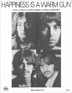 According to wikpedia: Lennon derived the title of “Happiness Is a Warm Gun” from that of an article in the May 1968 issue of American Rifleman, the magazine of the National Rifle Association (NRA). The magazine belonged to George Martin, the Beatles’ producer, who had brought it with him to the recording studio. Lennon recalled his reaction to the phrase: “I just thought it was a fantastic, insane thing to say. A warm gun means you just shot something.”