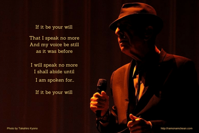 The first time I heard this song was on the Leonard Cohen tribute music documentary – I’m Your Man. Antony singing If It Be Your Will made a great impression on me. Please view his version if you haven’t already seen it. Someone wrote: ‘Antony’s transcendent vibrato interpretation is so full of emotion that you can feel the hopeful prayer for grace that Cohen surely intended when he wrote this modern-day Psalm..’ During Antony’s version, Leonard Cohen says: