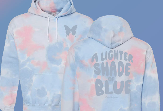 I wanted to give back some of the joy Christina’s music has brought me, so I thought ‘I would like to buy a sweater of her latest album’ – Lighter Shade of Blue‘ for each member of my family. It’s actually called a ‘Tie Dye Hoodie‘ (see inset) – Homies.