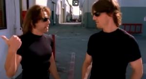 Ben Stiller is playing a stunt double for Tom Cruise and he’s called Tom Crooze, but he is so dedicated to Tom that he changes his mannerisms and name to reflect Tom’s. This isn’t so much an impressive impersonation as it is a goofball, but humorous take on how an obsessive stunt – double might try to adopt Tom’s ‘look’ and behaviour. That last clip of them laughing gets me. ‘I don’t think we’ve ever finished each other’s sentences.’