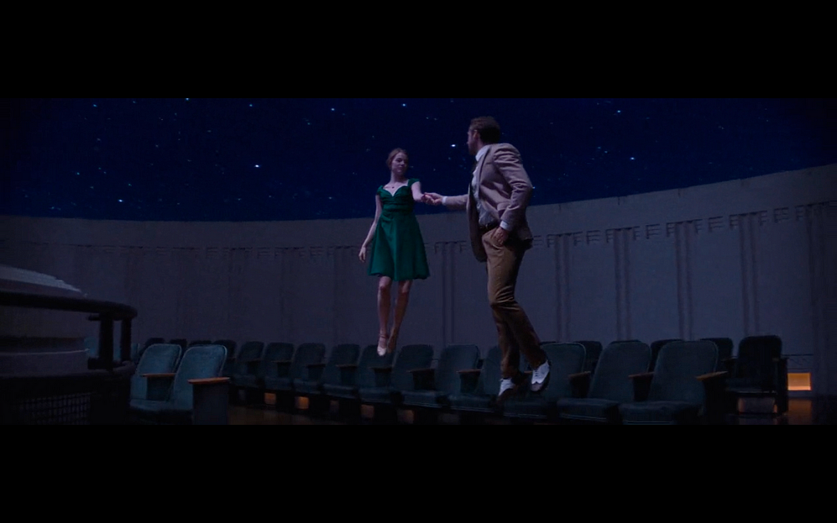 What I love most about this scene (and you could say the whole movie) is that you can’t really tell where reality ends and fantasy begins. The Planetarium scene from La La Land is one of my favourite scenes in the movie although I have many favourites including some which have already featured here including Another Day of Sun (opening car jam sequence), A Lovely Night (the roughly six minute uninterrupted Griffith park dance) and the Epilogue.