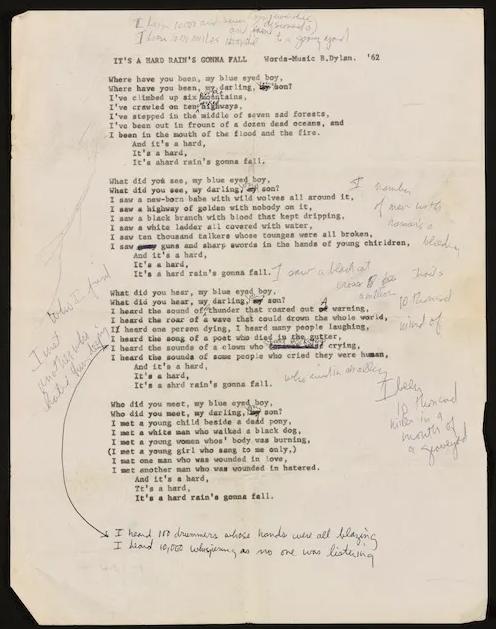 3. Sotheby’s ‘It’s A Hard Rain’s Gonna Fall’, revised typescript