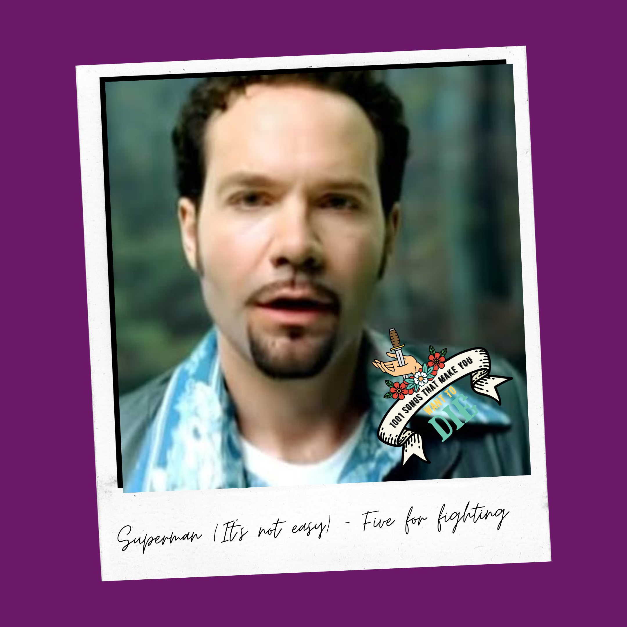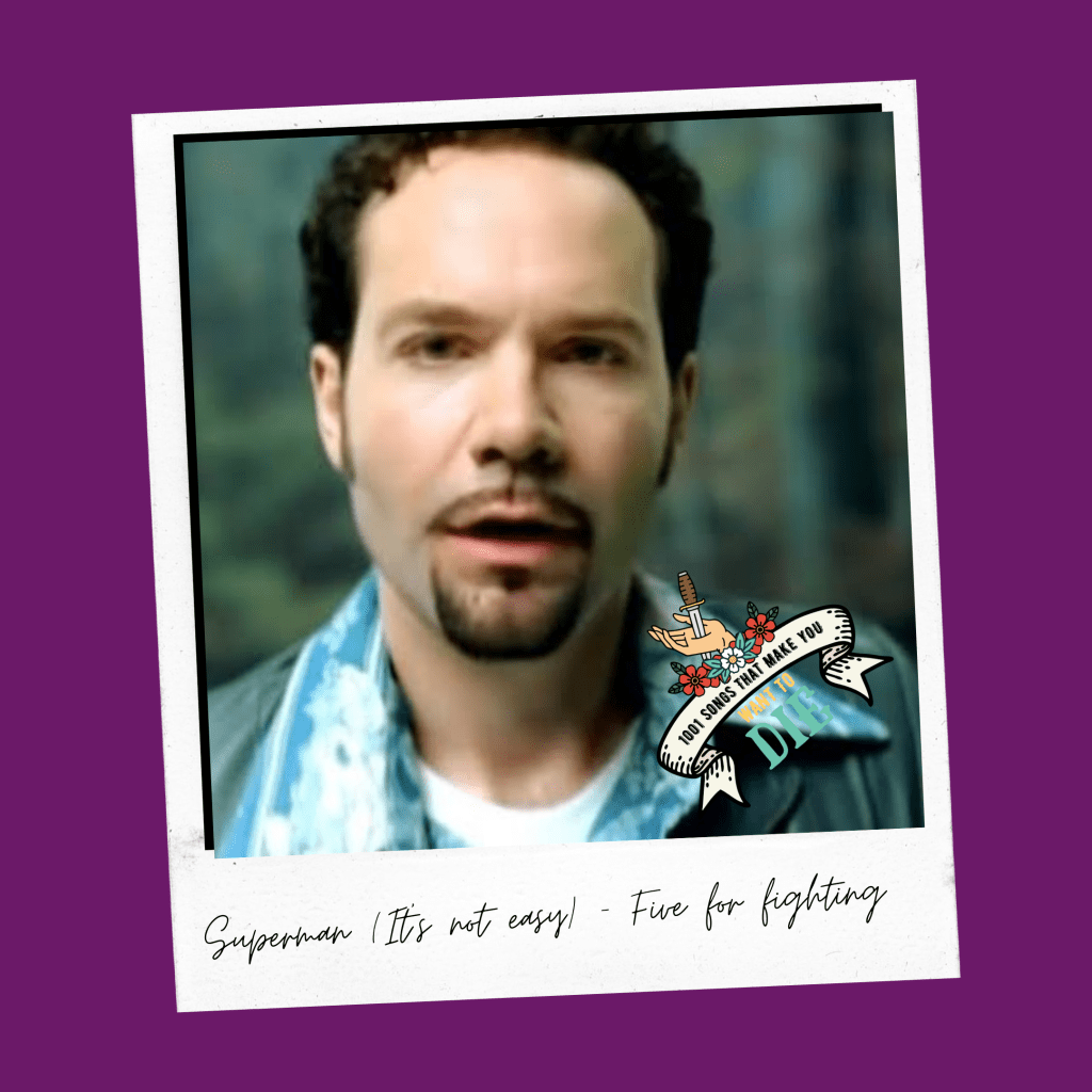 Superman is the third song on Five for Fighting’s sophomore album, America Town (see image inset) and the second single released from it. It became a huge radio hit after the horrific 9/11 attacks and was used to honor the victims, survivors, police, and firefighters involved in the attacks. It peaked at No.14 on the Billboard, and was nominated for a Grammy in 2002. The single was a major hit in Australia (because we are more sentimental and mushy) and New Zealand, reaching number two on both countries’ national charts.