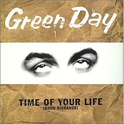 When the video (below) came out, the name of the song was inverted, hence the video’s title is “Time of Your Life (Good Riddance)“. This title was also used on the single cover (above).